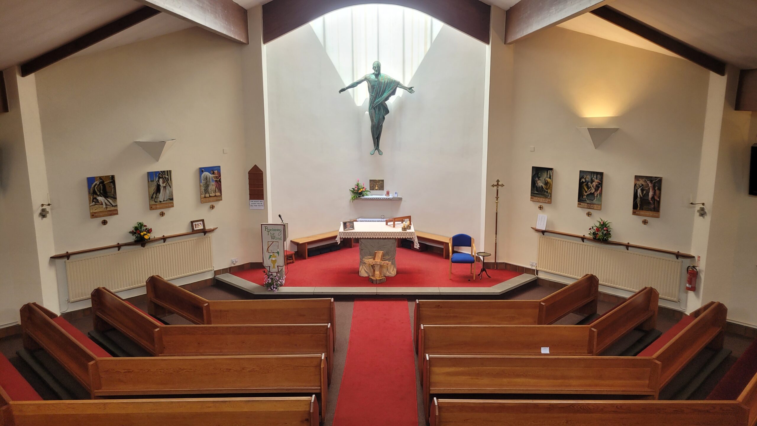 As the parish expanded, so did the need for space. The old Methodist Chapel was taken over and used for services. The new church of St Peter and Saint Paul was designed in 1982 and was part of a development of housing known as the Cloisters. The presbytery was nearby. Interior devotional fittings for the church were the work of renowned local sculptor and artist Carmel Cauchi.